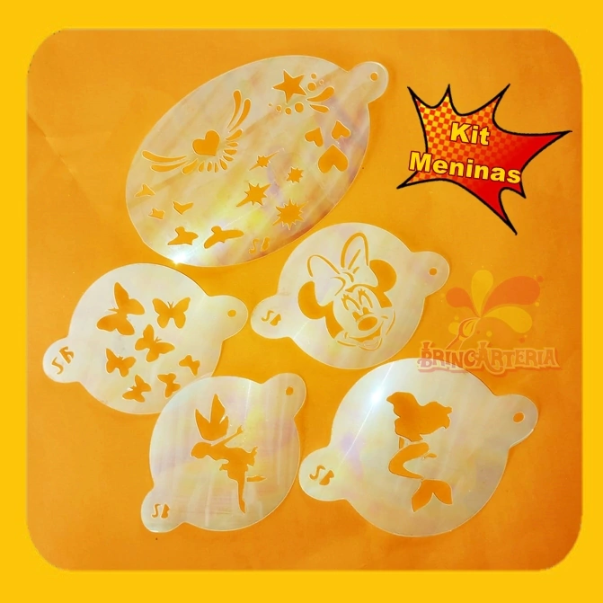 Kit Promocional de stencils mais vendidos para pinturas de meninas, para compor infinitas criações imitando tatuagens ou conforme imaginação do artista maquiador.