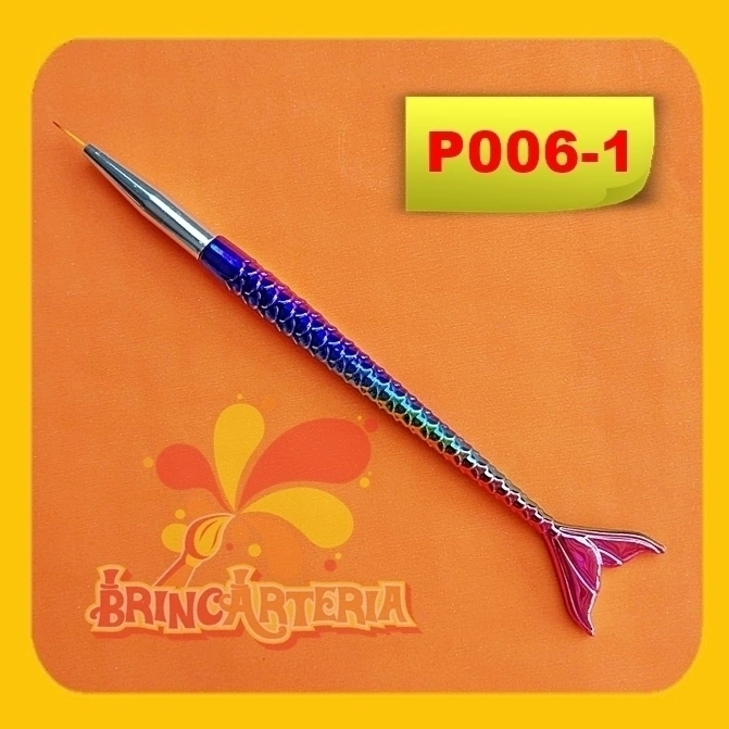 Pincel Cauda de Sereia Filete – Esse tipo de pincel é indispensável na atividade de Maquiagem Artística/Pintura Facial pois é ele quem dá o contorno à figura ou ao design, desenhos e personagens a serem pintados. É o tipo de pincel responsável também pelos acabamentos como pontos de luz e traços que indicam sombra, contraste, limites e detalhes delicados e finos. Seu cabo é gracioso decorado com a figuração de uma cauda de sereia. Dimensões: 17cm da ponta das cerdas ao final do cabo - Cerdas: 1cm de comprimento e 1 mm de espessura aproximadamente.