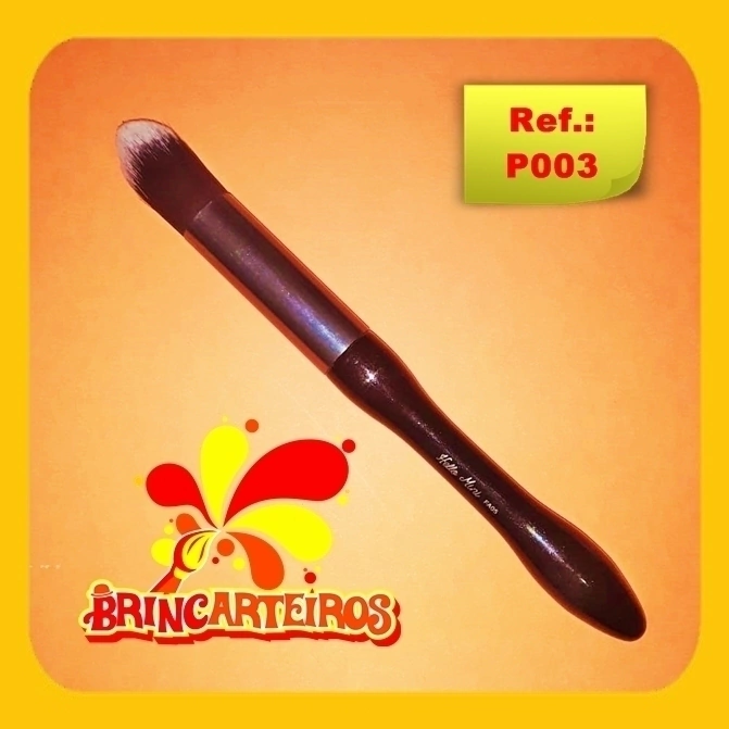Pincel para Base Hello Mini. Ideal para aplicar pancake cremoso como base da pintura facial ou corporal. Por conter cerdas macias e densas, contribui para uma cobertura homogênea da maquiagem artística ou social. Cabo de alumínio/madeira e cerdas sintéticas.
