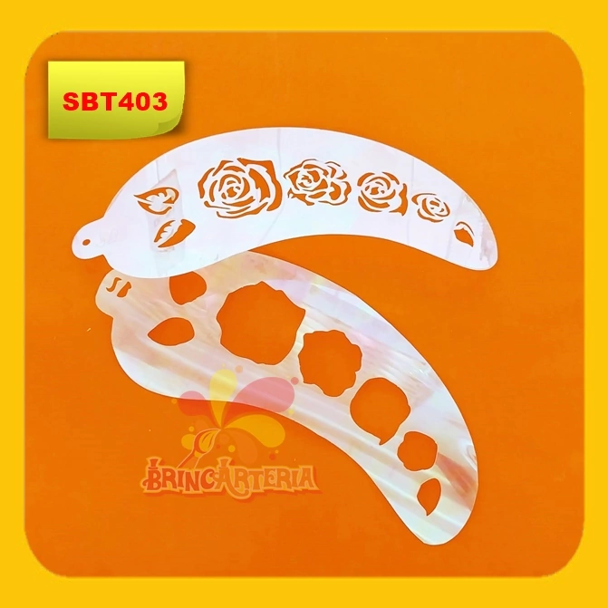 Stencil para Pintura Facial e Corporal sob o tema Rosas. De material flexível, lavável e no tamanho adequado para ser utilizado no trabalho de Maquiagem Artística/Pintura Facial.