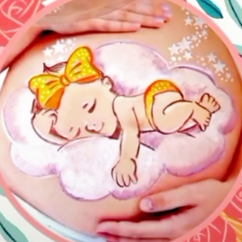 Stencil para Arte Gestacional ideal para compor pinturas de bebês em gestantes. De material flexível, lavável e no tamanho adequado para ser utilizado no trabalho de Arte Gestacional/Belly Paint. Tamanho: 28×17cm