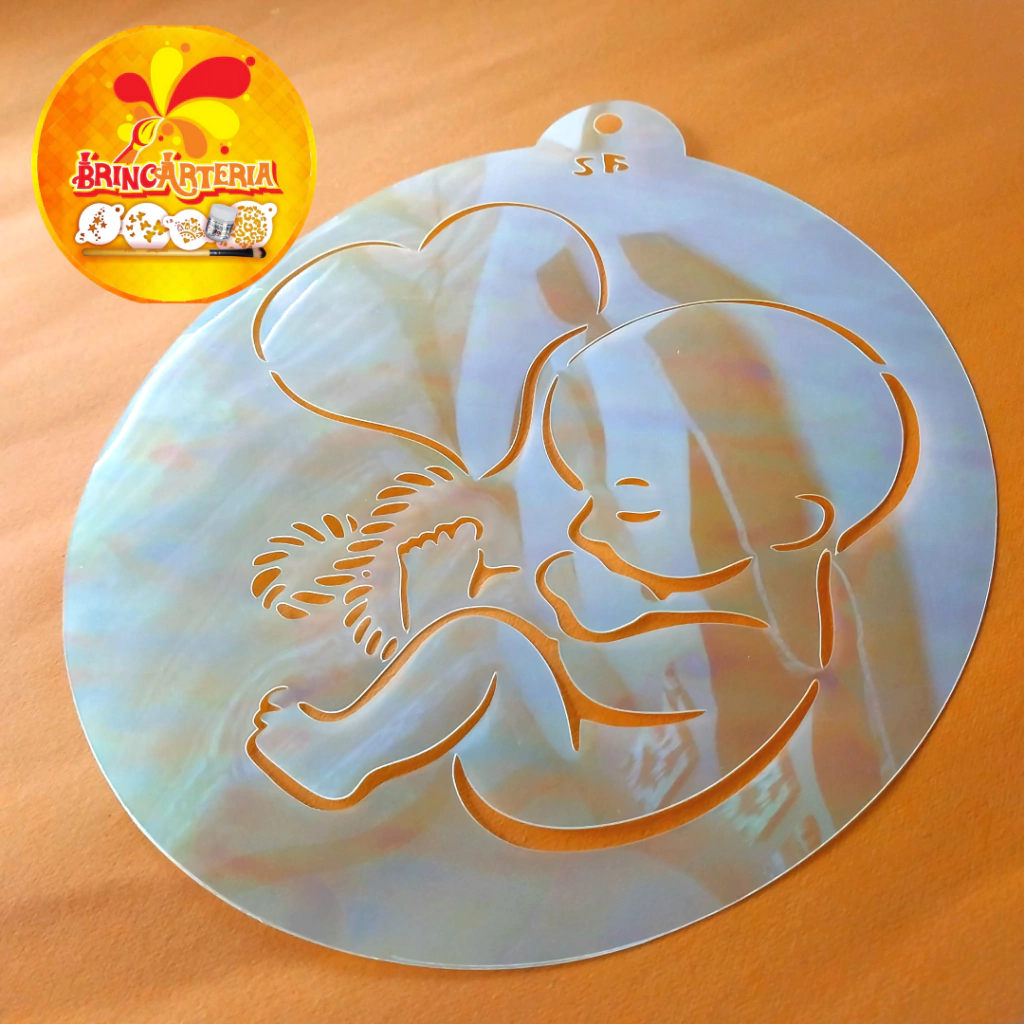 Dimensões: Figura do Bebê -17,5cm de altura; Tamanho total do stencil - 29 x 23,5cm