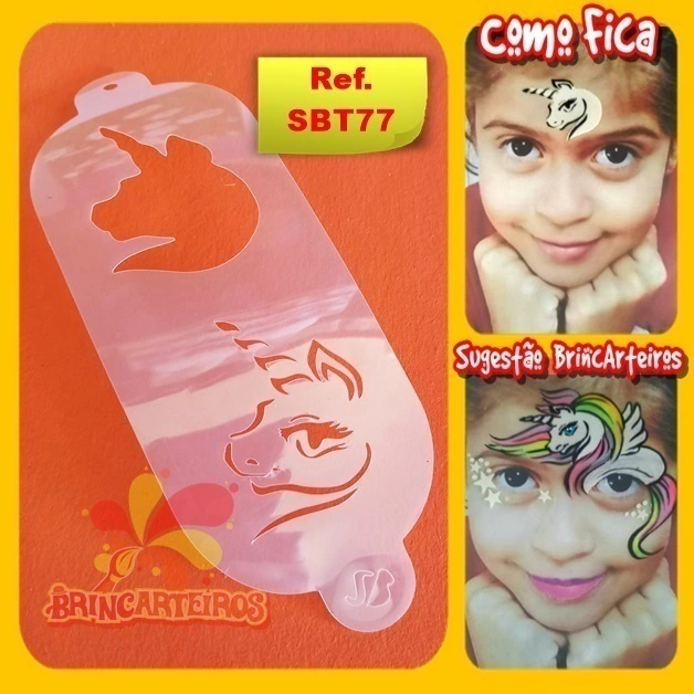 Stencil para Pintura Facial e Corporal, Tattoo-Glítter, Tattoo-Fake ou Tattoo temporária. De material flexível, lavável e no tamanho adequado para ser utilizado no trabalho de Maquiagem Artística/Pintura Facial. Dimensões: 17,5×6cm