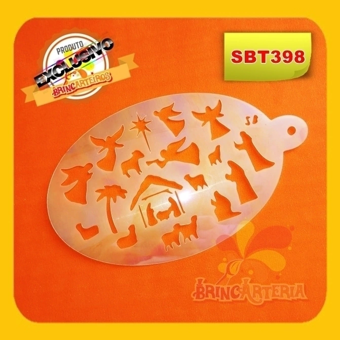 Stencils Natal para Pintura Facial e Corporal, Tattoo-Glítter, Tattoo-Fake ou Tattoo temporária. De material flexível, semi-transparente para facilitar a sobreposição dos traços de diferentes cores, lavável e no tamanho adequado para ser utilizado no trabalho de Maquiagem Artística/Pintura Facial. ATENÇÃO: Essa venda refere-se a uma unidade de stencil, ou ao kit promocional faça a sua escolha no campo OPÇÕES. DESCRIÇÃO das opções: KIT PROMOCIONAL com todos os stencils da imagem - KPB37 - 8 unidades / STENCIL FOGOS ANO NOVO - SBT71 - dimensões de um dos fogos: 4x4cm - dimensões das duas taças: 2,5x2,5cm - tamanho total do stencil: 15x9cm / STENCIL FELIZ NATAL - SBT397 - dimensões aproximadas das palavras Feliz Natal: 7,5x2cm - tamanho total do stencil: 15x9cm / STENCIL PRESÉPIO - SBT398 - dimensões do presépio: 3x2,5cm - dimensões aproximadas dos anjos: 2cm - tamanho total do stencil: 15x9cm / STENCIL KIT NATAL - SBT399 - dimensões do Papai Noel: 5x4,5cm - Gorro do Papai noel: 3,5x3cm - bolas de natal: 2cm - trio de bolas de natal: 4x3,5cm - tamanho total do stencil: 14x12cm / STENCIL GRINCH - SBT400 - dimensões da figura do Grinch: 5x4,5cm - nome Grinch: 5,5x2cm - tamanho total do stencil: 15x9cm / STENCIL LUZES PISCA-PISCA - SBT401 - dimensões de cada lâmpada: 2cm - tamanho total do stencil: 21,5x6cm / Stencil Sinos 1 - SBT402-1 - dimensões da figura inteira: 5x5,5cm - tamanho total do stencil: 10,5x7,5cm / STENCIL SINOS 2 - SBT402-2 - dimensões da figura inteira: 6x4cm - tamanho total do stencil: 10,5x7,5cm